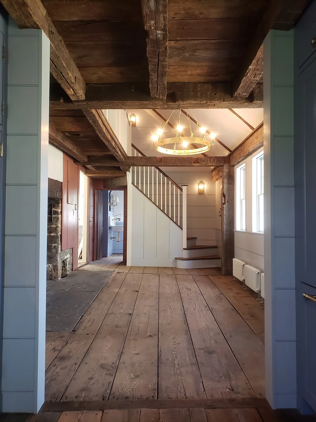 “THIS MASTERFUL PRESERVATION EFFORT HAS SAFEGUARDED THE TIMBER STRUCTURE FOR ANOTHER CENTURY, WHILE QUIETLY INTRODUCING MODERN COMFORTS AND SUSTAINABLE ENHANCEMENTS. GUIDED BY THE ARTIST OWNER’S SENSIBILITIES, THE DESIGN UNIFIES INTERIORS FROM MULTIPLE PERIODS BY EMPLOYING A COHESIVE PALETTE. SOFT COLORS COMPLEMENT THE ORIGINAL PLASTER AND RUGGED EXPOSED FRAME, AND SUNLIGHT ANIMATES THE PRESERVED 18TH CENTURY WINDOWS. BY PRESERVING ORIGINAL ELEMENTS WHEREVER POSSIBLE, AND BY PARTNERING WITH SKILLED CRAFTSPEOPLE, THIS PROJECT IS AN OBJECT LESSON IN PRESERVATION DONE RIGHT.”